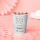 Für ein glamouröses und mädchenhaftes Party zum 30. Geburtstag. Ein Imitat silber metallisch aussehender Hintergrund. Auf der Vorderseite und auf der Rückseite: Personalisieren und fügen Sie einen Namen und ein Datum. Dekoriert mit Imitaten Glitzer Staub.
