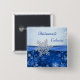 Silberne Schneeflocke auf einem schneebedeckten Hintergrund Hochzeits-Brautjungfern-Knopf mit Bandeffekt. Merken Sie bitte: Band ist ein Druckbild.