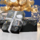 Silberner frohe Weihnacht-Text-glänzender Diamant-schwarzer Hintergrund-elegantes Ferienzeit-Geschenk-Packpapier