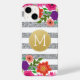 Silberner Glitzer, Blume, Streifen, Goldmonogramm Case-Mate iPhone 14 Hülle