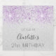 Für eine mädchenhafte und glamouröse 21. Geburtstagsfeier mit den Mädchen. Ein Imitat silber aussehender Hintergrund mit lila Imitaten Glitzer Staub. Der Text: Der Name ist schwarz geschrieben mit einem modernen, handgeschriebenen Stilskript. Personalisieren und fügen Sie einen Namen, Alter 21 und ein Datum. Geburtsdatum oder Geburtsdatum des Party.