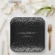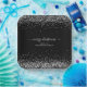 Silberner Glitzer Name Frohe Weihnachtsschwarz. Eine Touch Funkeln für Ihren festlichen Tisch, mit einem Rand von Imitaten Glitzer oben und unten, und Fröhliche Weihnachten ist in einem eleganten handgeschriebenen Stil Skript. Personalisieren Sie sich einfach mit Ihrem Namen und Ihrer Rücksendeadresse. Sie können Text- und Hintergrundfarben auch über die Option Weitere Einstellungen ändern.