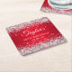 Erstellen Sie Ihre eigenen 40. Geburtstag Party quadratische Papier Untersetzer. Girly Imitate funkelnd silberner Glitzer über einen hellen roten Farbverlauf. Löschen Sie den Farbverlauf oder die digitale Kunstgrafik, wenn Sie einen soliden Farbhintergrund bevorzugen. Passen Sie die Stile des Schriftartes an, um Ihr eigenes Design für ihre besondere Feier zu kreieren. Eine klassische, elegante Kalligraphie gepaart mit einem Schriftart aus Serifen.
