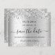 Eine elegante Save the Date-Karte für eine 40. Geburtstagsfeier (oder jedes Alter). Ein modernes Imitat silber aussehender Hintergrund mit Imitaten Glitzer Glitzern. Personalisieren und fügen Sie ein Datum und Name/Alter 40. Der Text: Save the Date ist mit einem großen angesagten, handgeschriebenen Stilskript geschrieben.