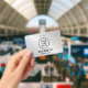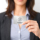 Moderne silberne Imitate Abzeichen mit metallischem Namen mit Ihrem Firmenlogo. Fügen Sie einen Namen und Titel in einfacher Typografie hinzu.