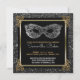 Elegante, Schwarz-, Silber- und Goldmaskeradeball-Geburtstags-Party des Bonbons 16 invitationss mit Imitat vereiteln, silbernes Confettiakzente Chic-Imitatgold, das metallische Blickrollen die Ecken gegen einen Holzkohlenschwarzhintergrund mit Imitatgoldmetallblick-Quadratrahmen und zerstreut verzieren, Confettipunkt-Grenzblick silberne Folie des Imitats. Eine metallische silberne Farbe, Kostümballmaskenentwurf schmückt die Spitze. Liest verbinden bitte den Maskerade-Ball, der herein mit personalisiertem Namen unten im Chicskript ehrt. Andere kundengebundene 16. Geburtstag-Partysonderkommandos unten, einschließlich UAWG-Informationen. Text in zusammenpassender Silber- und Goldfarbe. Textfarben und -arten können zum Anzug geändert werden Sie. Rückseite hat zusammenpassende Goldrollen in den Ecken mit dem Holzkohlenschwarzhintergrund, der mit silbernem Confettiblick zerstreut wird. Anmerkung: Alle Bilder werden gedruckt. Nicht tatsächliches Metall, Folie oder Confetti. Schön für Schwarzes und Goldthema, 16. Geburtstags-Partys des Silbers und des Goldes oder Kunst-Dekoarten sowie große Gatsby Zauberthemen.
