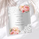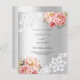 Eine elegante und romantische Einladung zum 25. Hochzeitstag. Ein silbernes Imitat mit rosa und Rose goldfarbenen Blumen, Rose und weißen Spitzen. Personalisieren Sie Ihre Namen und Details und fügen Sie diese hinzu. 1 Blatt = 1 Einladung mit Druckkante bis Kante.