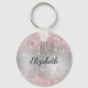 Silberrosa Glitzer Tropfen Metal Monogramm Name Schlüsselanhänger