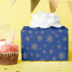 Glittery silberne Schneeflockenmuster auf einem tiefen Mitternachtsblauen Hintergrund.
