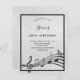 Eine trendige, moderne 50. Geburtstagsparty Einladungskarte. Ein rustikales Imitat silberfarben-metallischer Hintergrund, mit einem schwarzen Rahmen und Musiknoten, schwarzen Buchstaben. Personalisieren und fügen Sie Namen und Party-Informationen hinzu.