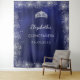 Eine Tapisserie für eine mädchenhafte und glamouröse Quinceañera, 15. Geburtstagsfeier. Ein marineblau blauer Hintergrund, die blaue Farbe ist ungleichmäßig. Dekoriert mit Imitaten silberner Glitzer Staub. Personalisieren und fügen Sie einen Namen, Alter, Datum.