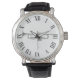 Uhr, Vintage Männeruhr mit schwarzem Lederarmband