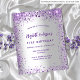 Eine mädchenhafte und weibliche 21. (oder jedes Alter) Geburtstagsfeier Einladung. vorne: Ein trendy Imitat silber aussehend Hintergrund. Dekoriert mit dunklen lila und violetten Imitaten Glitzer, Glitzern. Personalisieren und fügen Sie einen Namen, Party-Details. Der Name wird mit einem handgeschriebenen Stilskript geschrieben, lila Buchstaben. Zurück: Imitate silberner Hintergrund und Imitat Glitzer. 1 Blatt = 1 Einladung