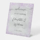 Ein silbernes Imitat mit violettem, lavendelfarbenem Imitat, Glitzern aus Glitzer und ein großer Schmetterling wie ein Wasserzeichen. Mit dem Text: Willkommen zu unserer Hochzeit. Personalisieren Sie Ihre Namen und fügen Sie sie hinzu.