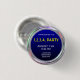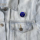 Chromieren Sie überzogenen Metallknopf für Party Einladungen oder anderen Text, Logo, Bild. Blauer und schwarzer Kreis. Schablone mit vier Textfeldern.