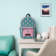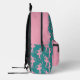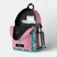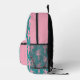 Dieser Rucksack weist ein Muster einer rosa Silhouette Ballerina auf einem aquamarinen Hintergrund für den Hauptkörper auf. Die Tasche passt jedoch rosa zu einem aquamarinen Tänzer mit einem Single, und Ihr Name in Rosa auf einem schwarzen Banner unter dem Bild. Die Oberseite der Tasche ist ebenfalls massiv rosa, was einen schönen modernen Kontrast bildet.