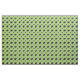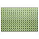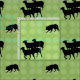 Eine klassische Border Collie Crouch behalte eine Gruppe von vier Schafen unter Kontrolle. Die Schafe und der Hund sind schwarz - einige mit feinen weißen Konturen. Der Hintergrund ist ein gemustert wiederholendes Design in verschiedenen Farbtönen von grün vage rund.