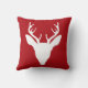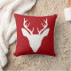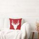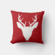 Desteis originelle weiße Silhouette eines Hirschkopfes mit großen Geweih-Geweihen auf rotem Hintergrund.