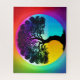 Eine Silhouette aus schwarzem Baum, umgeben von einer Atmosphäre des Regenbogenspektrums. Eine einsame schwarze Silhouette eines Baumes mit aufwändigen Blätter steht von selbst inmitten der Regenbogenfarben.
