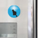 Silhouette de chat noir regardant une étoile brillante contre un arrière - plan bleu.