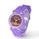 Silhouette mit schwarzem Bär auf Kariertem Rot Armbanduhr