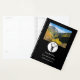 Monogramme de silhouette tribal noire. La photo stock d'une montagne boisée aux couleurs de l'automne peut être remplacée par votre propre image, selfie ou photo. Entre le rack parfait à dix points est changeable initial. Un séjour idéal pour une excursion en camping dans la nature plutôt pour, une fête de célibataire, une réunion de famille ou des vacances relaxantes. Tout est élégant mais toujours masculin.