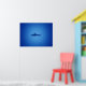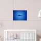 Blurige Hai-Silhouette vor blauem Wasser mit hellblauem Licht
