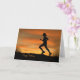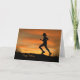 Silhouette couchant devant un arrière - plan de coucher de soleil rouge, orange et jaune. Carte parfaite pour le coureur qui célèbre son anniversaire. 2014 © Design par Julia Bryant.