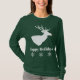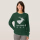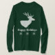 Festliche Silhouette aus Weißhirsch mit roter Nase und Schneeflocken.