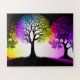 Ein lebendiger Sonnenuntergang, der die Bäume in faszinierende Silhouetten verwandelt, die sich vor einem strahlenden Hintergrund abbilden. Das Zusammenspiel von warmen Farben und zarten Farbtönen schafft ein atemberaubendes Spektakel.