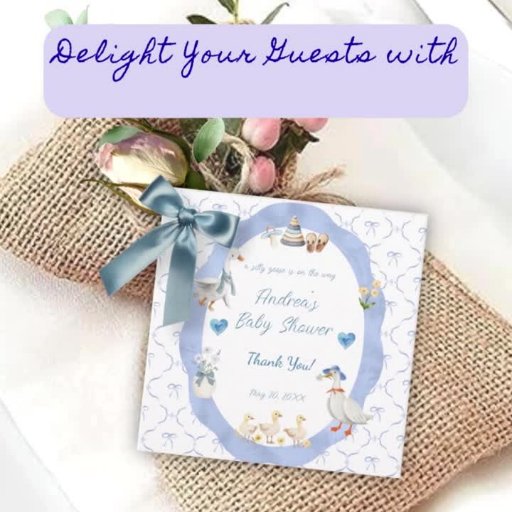 Honk! A silly baby goose is on the way! Get ready to waddle into a delightful celebration with this charming "Silly Goose" baby shower theme. Perfectly capturing the joy and whimsy of welcoming a baby boy, this unique transparent acrylic "cards and books" sign is sure to make your guests smile. It features hand painted blue bows, flowers, hearts, baby bottle, pacifier, stacking toy and mom, dad and baby geese too. Easily change the details to your own and if you would like to, edit the font style, color, size and placement.