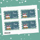 Silly Santa , falling upside down inside the chimney , blue-green rectangular kid Christmas gift tag sticker with a green and white striped frame . Personalize it with the name of the child and of the giver (if other than Santa).
