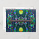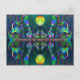 "Silurian Globe" Fantasy Art Postcard inspiriert durch ungewöhnliche Lebensformen der geologischen Ära, bekannt als die Silurian Periode mit digital verbesserten Original fluoreszierenden gemischten Medienassemblage Kunstwerke, fotografiert von der Künstlerin in schwarzem (UV-Ultraviolett) Licht.