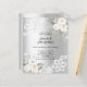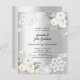 Für ein elegantes und romantisches 25-jähriges Hochzeitstag. Ein silbernes Imitat mit weißen Blumen, Rose und weißen Spitzen. Personalisieren Sie Ihre Namen und Details und fügen Sie diese hinzu. 1 Blatt = 1 Einladung mit Druckkante bis Kante.