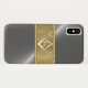 Fügen Sie ein Monogramm auf dieser einfachen und schick aussehenden Handy-Gehäuse mit silberem Hintergrund und goldenem Band. Platz und Kompass werden in Gold gemacht.
