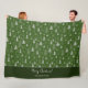 Add a special touch to your holiday home decor with this adorable custom green and white tree pattern Christmas fleece blanket. Blanket has a forest of silver faux foil trees on a green background. There is also a place for two custom text fields, such as Merry Christmas and your family name. (Personalized text and background color may be removed per your preference in the personalization area.)