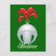 Dieses schlichte silberne Weihnachtsgeschenk sagt alles: GLAUBE! Hübscher Rot-Bogen und glitzernde Silberglocke sind perfekt für den Urlaub auf Grußkarten, T - Shirt, Bekleidung, Totentaschen, kleinen Geschenke & mehr! PinkInkArt Original!