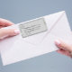 Ein elegantes silbernes Hochzeitslabel mit Glocken in der Ecke.