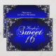 Royal Blue & Silver Sweet 16 Anniversaire Invitation. Design élégant en argent et noir perle damassé. Remarque : Toutes les images plates, Ils n'ont pas de vrais bijoux!