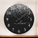 Silver Black Glitzer Script Monogram Girenname Runde Wanduhr