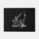 Vector Stamm eines heulenden Wolfs in Silber auf einem schwarzen Hintergrund. Passen Sie es mit Ihrem Namen oder Text an.