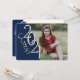 Classe de 2021 invitation de graduation bleu et argent avec photo et éditable fête de graduation ou information de début sur le dos. Customisez avec votre propre photo, texte et style de police.
