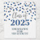 Graduation Party individuelle Weinflaschen Etiketten Klasse von 2025 mit silber und blauen Glitzer Muster confetti.