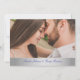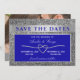 Moderne, einfache Kalligraphie-Skript, eleganter königsblauer und silberner Glitzer Wedding Save The Date Einladung mit zwei Daten und Bild des Paares.