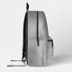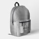 Dieser personalisierte Rucksack ist mit einem Monogramm und einem Vornamen in modernem Schwarz-Weiß-Drehbuch auf elegantem silberfarbenem Imitat aus Metall ausgestattet.