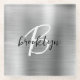 Dieser elegante personalisierte Untersetzer zeichnet sich durch ein Monogramm und einen Vornamen in modernem Schwarz-Weiß-Drehbuch auf einem silbernen Imitat gebürstetem Metall-Hintergrund aus.