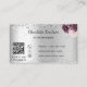 Silver burgundy florale elegant monogram QR code Visitenkarte