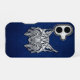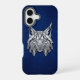 Capture the essence of stealth and sharp focus. This luxury iPhone 16 case features a detailed metallic silver geometric lynx head with its iconic tufted ears in a 3D chrome style. The modern industrial art is set against a premium cobalt blue python snakeskin texture, offering a sophisticated and unique look for your tech.