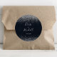 Der klassische Rundaufkleber aus Silberkonfetti ist ideal für einen rustikalen Hochzeitsempfang. Das schlichte und elegante Design besticht durch klassische und extravagante Skripttypografie mit blauem Hintergrund und silbernen Konfetti.