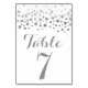 Ajoutez une touche de brillance à votre réception de mariage avec ces élégants numéros de table. Dotées d'une cascade de confettis argentés chatoyants sur un arrière - plan blanc immaculé, ces cartes créent un look moderne et chic. Personnalisez facilement vos numéros de table pour un cadre de table cohérent et inoubliable.